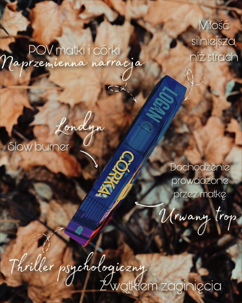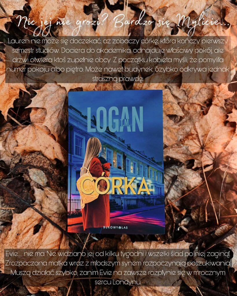 „Córka” T.M. Logana, to niesamowicie wciągający thriller psychologiczny, który od samego początku wciąga w spiralę nawarstwiających się kłamstw. Autor stworzył gotowy scenariusz pod adaptację filmową, którą oglądałoby się na wielkim ekranie z zapartym tchem. Dwie narratorki – matka i córka, naprzemiennie opowiadają nam swoją historię, dzieląc się wewnętrznymi rozterkami oraz słabościami. Fabuła rozpoczyna się w momencie, gdy Lauren, matka Evie, przyjeżdża pod akademik po swoją córkę, by zabrać ją do domu na przerwę świąteczną, a w zamian … dowiaduje się o jej zniknięciu.