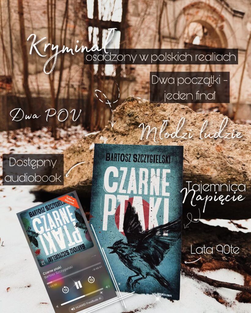 „Czarne ptaki” Bartosza Szczygielskiego, to najnowsza propozycja kryminalna, która wyszła spod pióra autora. Charakteryzuje się ona nieszablonową formą, gdyż można ją czytać na kilka sposobów – to Ty wybierasz od której strony zaczniesz i poznasz tę historię. Możesz również czytać naprzemiennie – przerzucając ramy czasowe wraz z obrotem książki do góry nogami, rozdział po rozdziale.