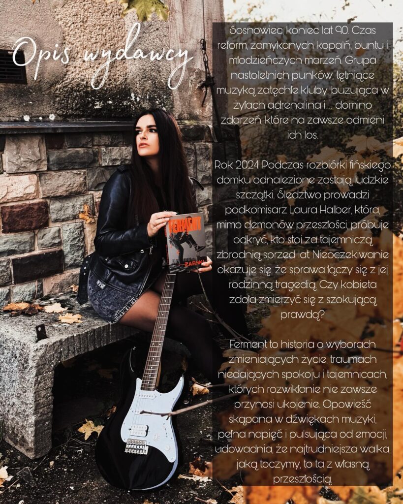 Lata 90-te w „Fermencie” stanowią jedną z dwóch linii czasowych, w których Przemysław Żarski osadził fabułę swojego najnowszego kryminału. Postkomunistyczna Polska, Sosnowiec, czas reform ustrojowych, zamykania kopalni i masowych zwolnień. Szare blokowiska nawiedza widmo porażek finansowych, alkoholowych cugów, agresji za zamkniętymi drzwiami. Rodziny cierpią wskutek wielu problemów, próżno szukać społecznego porozumienia, gdy nawet w domach dochodzi do pasma nieustających awantur. Głównymi bohaterami „Fermentu” jest dorastająca ekipa nastolatków, która próbuje swoich sił na scenie punk rocka. Druga oś narracji rozgrywa się w 2024 roku, w momencie, gdy w piwnicy jednego z domków zostają odnalezione ludzkie zwłoki…