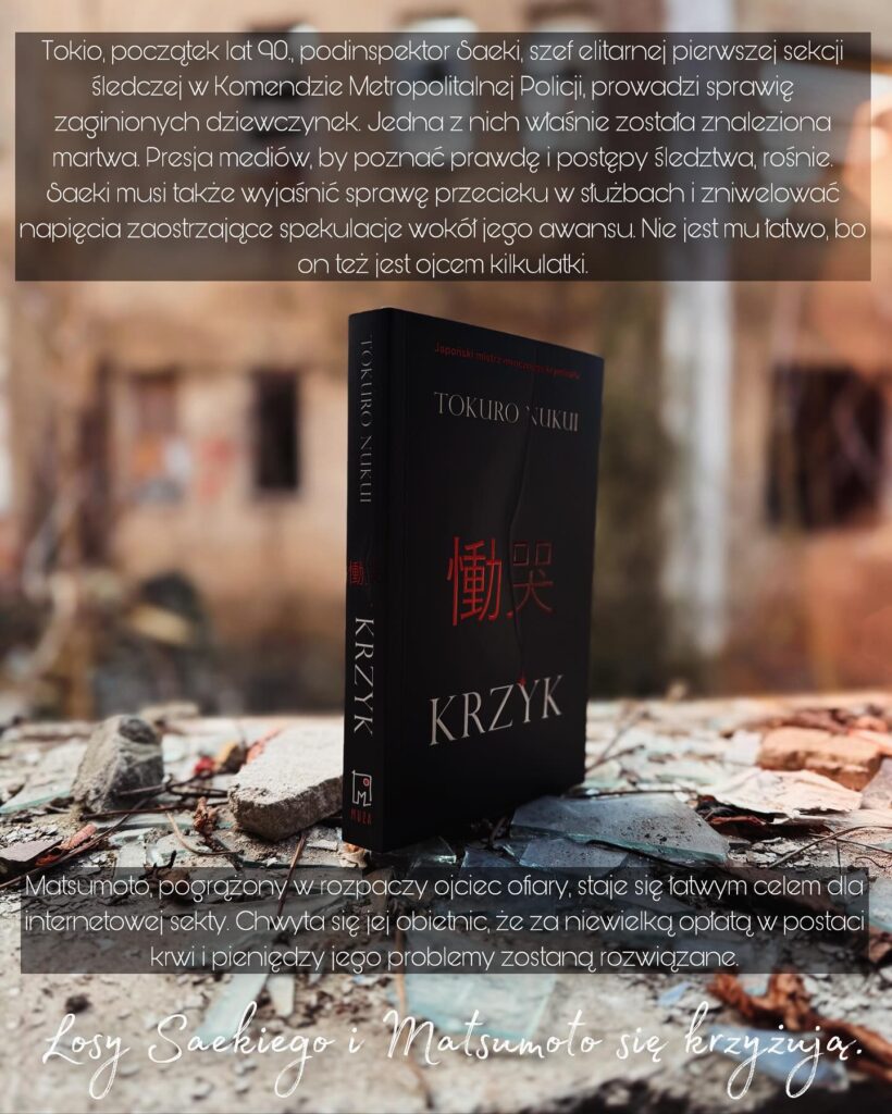 „Krzyk”, to debiutancka powieść kryminalna japońskiego pisarza Tokuro Nukui. Pierwotnie wydana w oryginale we wczesnych latach 90-tych, dopiero po ponad trzydziestu latach doczekała się polskiego tłumaczenia. Nazwisko autora było mi zupełnie nieznane, lecz po lekturze „Krzyku” liczę na to, iż powieść narobi na rynku wydawniczym tyle szumu, że doczekamy się również tłumaczeń kolejnych książek tego powieściopisarza.