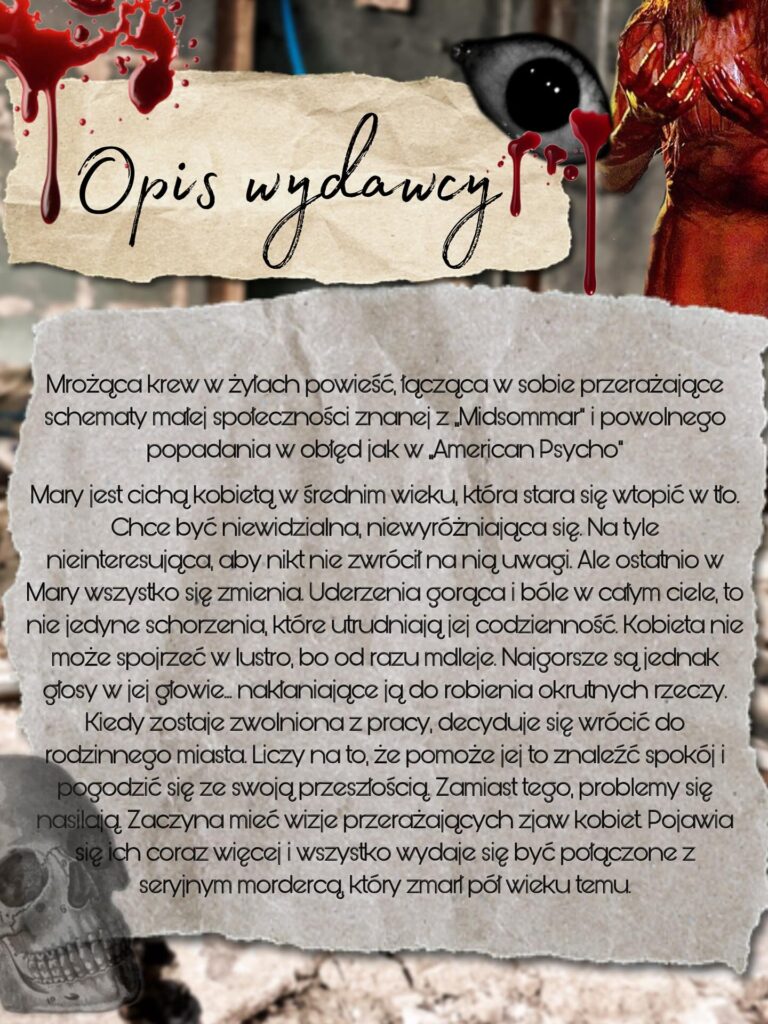 „Mary. Przebudzenie grozy”, to powieść niosąca znamiona rewelacyjnie utkanej grozy psychologicznej, suspensu, kryminalnej zagadki, oraz studium narastającej psychozy. Desperacja wręcz kipi z każdej kolejnej strony, a wydarzenia nabierają na pędzie. Od mnogości wątków aż się roi, mamy tu sporo psychodelii, sekciarskich wstawek, oraz onirycznych nawiązań do wewnętrznego dualizmu. Pozorne zamazanie bolesnych rys, które są wciąż nieprzepracowanymi traumami z dziecięcych lat Mary wyjdą na jaw rzucając światło na jej doszczętnie zmasakrowaną psychikę. Odkrywanie własnego ja okaże się nad wyraz bolesne, a każde wspomnienie uderzy schizofrenicznie ujmującą mocą. Polecam!!
