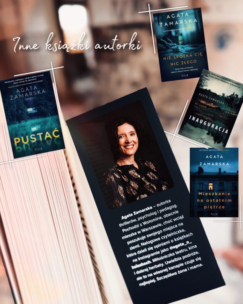 Na plus z pewnością warto odnotować angażującą linię fabularną, która od samego początku łapie w swoje szpony i charakteryzuje się całkowitą zagadkowością. Nie zapoznawałam się z opisem wydawcy, więc odkrywanie kolejnych rewelacji stanowiło dla mnie niemałą gratkę. Przyznam szczerze, że momentami byłam totalnie pogubiona w tym kołowrotku napędzanym przez niedopowiedzenia i kłamstwa. Ciężko zaufać tu konkretnej postaci, gdyż niemalże każdy uczestnik tego teatru makabry odgrywa daną rolę. Rolę, której nie odkryjesz aż do momentu przerzucenia ostatniej strony. Agata Zamarska zdaje się być wprawną manipulantką fabularną, gdyż poprzez kreację swoich postaci i zawiłość wydarzeń tak namąciła mi w głowie, że nie byłam w stanie prawidłowo wytypować sprawcy i jego motywacji.