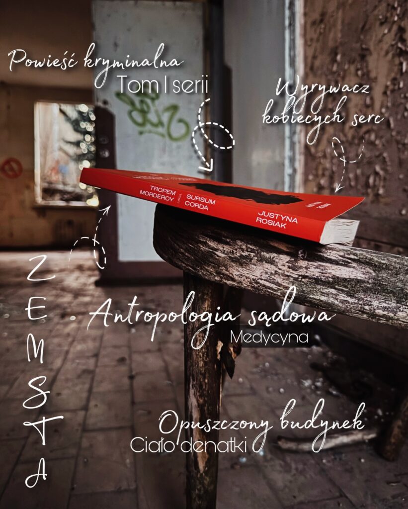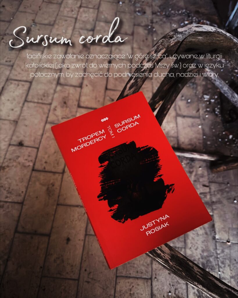 „Tropem mordercy. Tom 1: Sursum Corda.”, to historia rozpoczynająca zupełnie nowy cykl kryminalny spod pióra dwudziestosiedmioletniej magister antropologii – Justyny Rosiak. Autorka zawodowo zajmuje się m.in. nauką biologii, analizą materiału szkieletowego i sporządza analizy antropologiczne, stąd też czuć w niniejszej powieści sznyt specjalisty i ogromną pasję względem danej dziedziny.