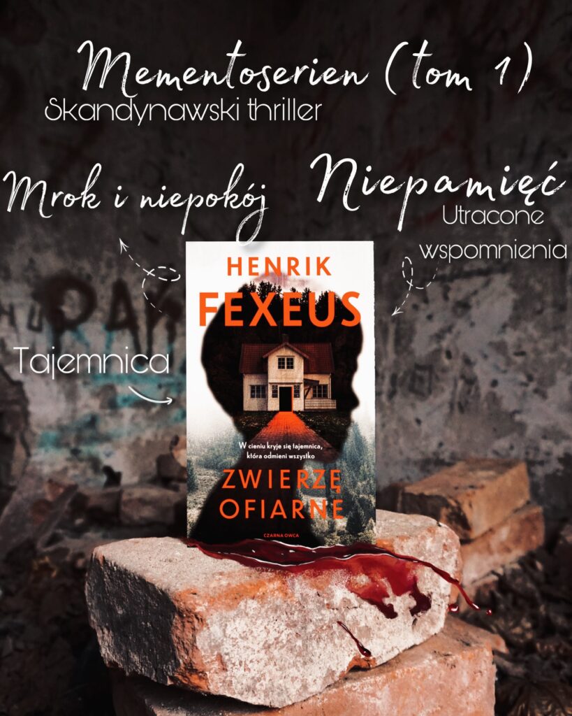 „Zwierzę ofiarne”, to pierwszy tom nowej serii Mementoserien spod pióra szwedzkiego autora Henrika Fexeusa, który zasłynął na arenie mrocznej literatury cyklem Mentalista, współtworzonym z Camillą Lackberg. W swojej najnowszej powieści eksploruje on ludzką psychikę i próbuje znaleźć klucz, wedle którego jednostkę definiuje dzieciństwo. Głównym, a zarazem wiodącym zagadnieniem jest tutaj niepamięć, uniemożliwiająca Davidowi odzyskanie wspomnień z pierwszych lat swojego życia. Mężczyznę trapią stale nawracające koszmary i lęki. Jego reakcja z matką istnieje teoretycznie wyłącznie na papierze, gdyż od wielu lat każde z nich poszło w innym kierunku i nie ubiega się o uwagę tej drugiej strony. Już od samego początku mamy wrażenie traumy wiszącej w powietrzu, a przeskoki czasowe i dwutorowa narracja mają za zadanie przybliżyć nas do rozwiązania zagadki związanej z zatraceniem wspomnień przez głównego bohatera.